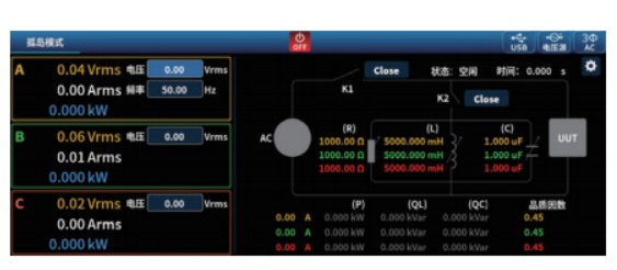 当N75500工作在吸收能量时,可将被测设备输出的交流电或直流电(通过内部整流)转换成与本地电网同频、同相、同电压的纯净正弦波电流,然后“注入”回电网。