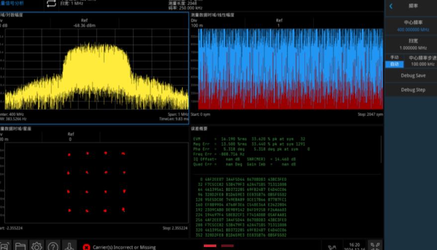 进行解调分析,可分解出信号的质量,EVM的误差矢量等