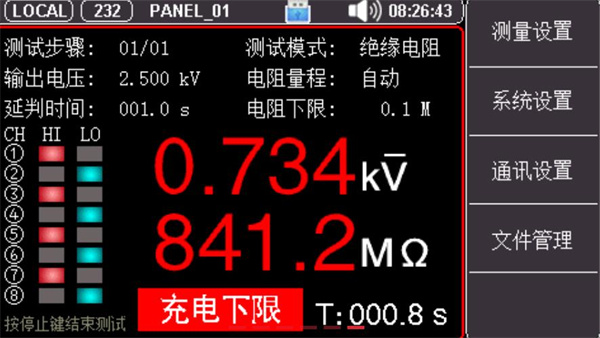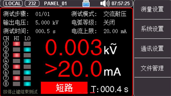 UT5320R-SxA系列采用4.3英寸真彩液晶显示,具有4/8测试通道,通过各种实体按键以及数字键盘可以快速完成各种测试条件设置。机身使用高性能32位ARM微处理器控制,能够实时测量被测体的各项安规参数,整机线路模块间采用全隔离措施,抗干扰能力强,是集电气强度(交/直流耐压)、绝缘电阻、接触检测多项测试功能于一体的仪器。