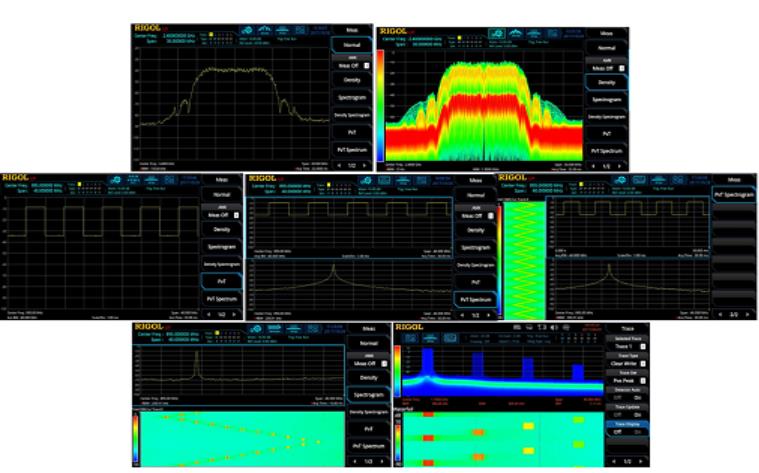 使用RSA5000的7种实时信号显示模式可以更轻松地捕获,隔离和分析射频信号和系统。功率与时间的关系以及频谱图显示了信号如何随撷取时间或连续撷取时间的变化而变化。结合这些呈现方式并在不同模式下使用标记和触发器,使RSA5000成为实时射频分析和调试的灵活工具。