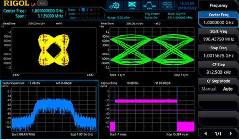 矢量信号分析功能VSA支持多种数字调制格式,如QAM,PSK,MSK、ASK、FSK等。通过该功能进行快速地解调,展示其星座图,眼图(基带信号),频谱图,解调数据等多维数据,从而发现设计中存在的问题。